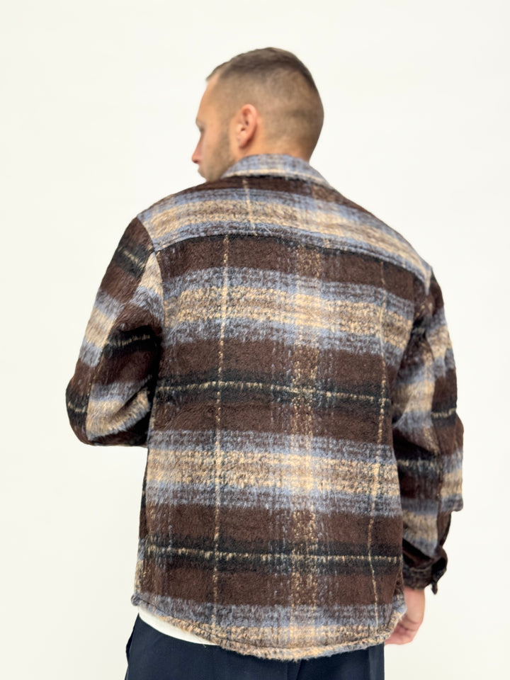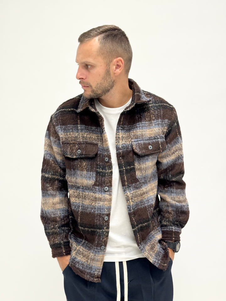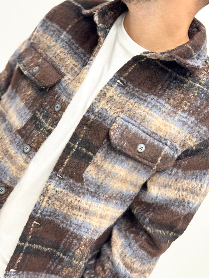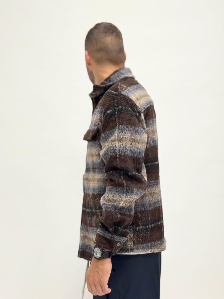 Giacca/Camicia lanetta azteca scura marrone celeste 7713-5