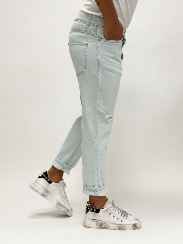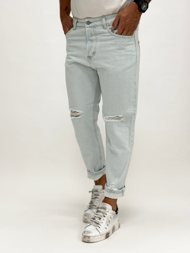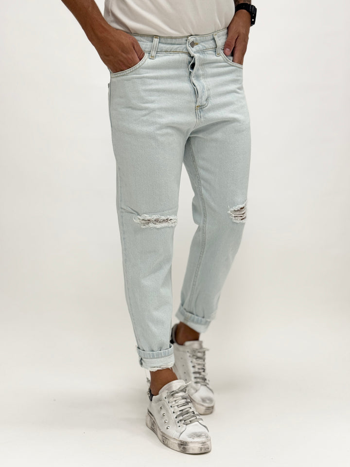 Jeans A.D carrot fit chiaro taglio ginocchia