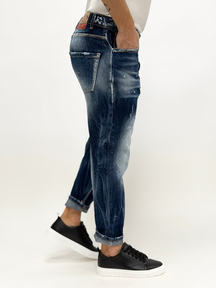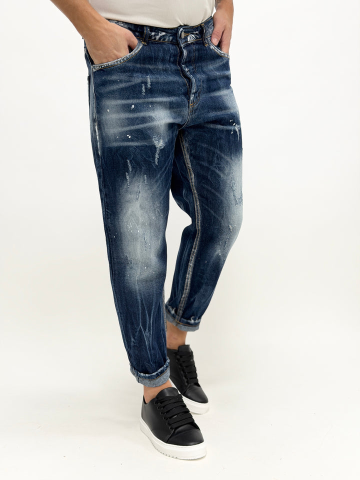 Jeans carrot fit schizzi scuro