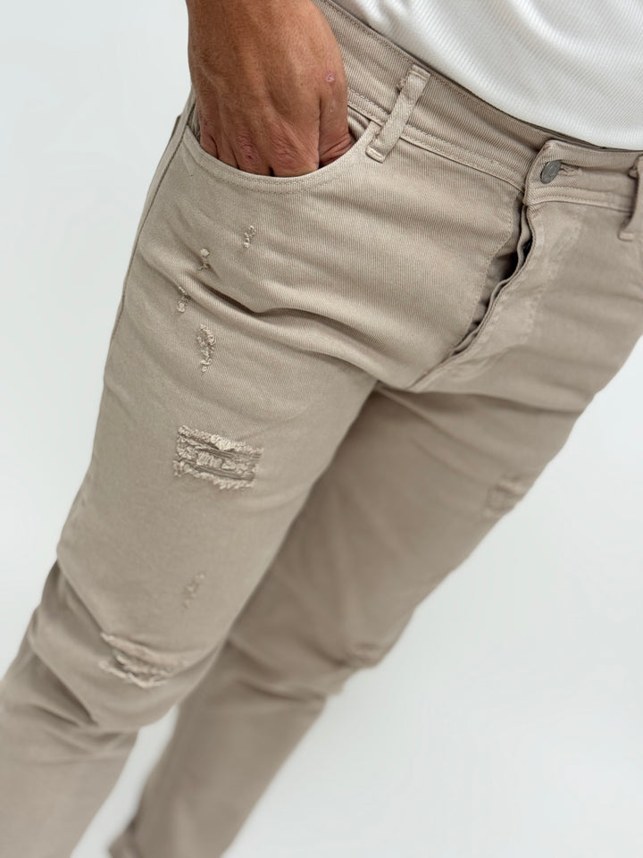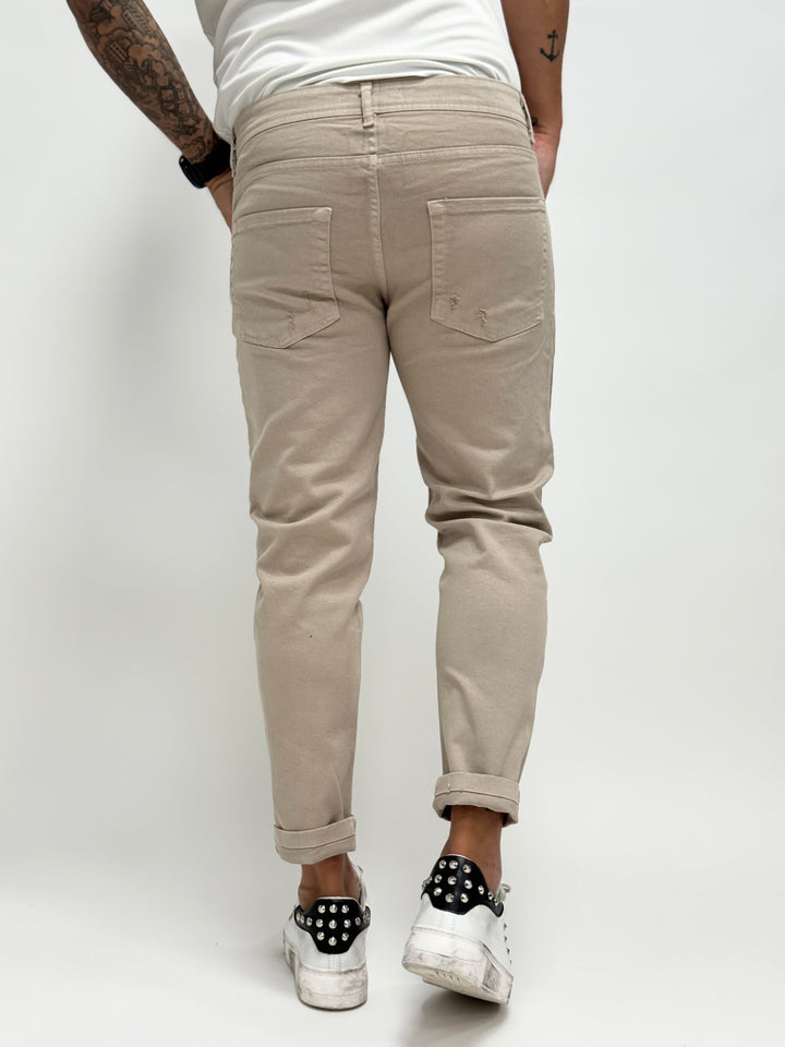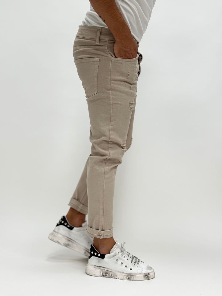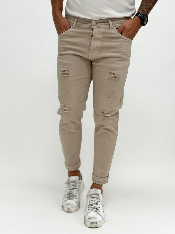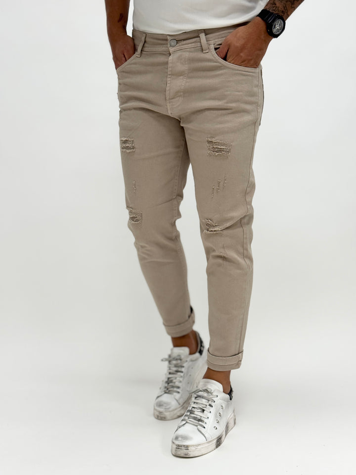 Jeans O.B slim con rotture beige